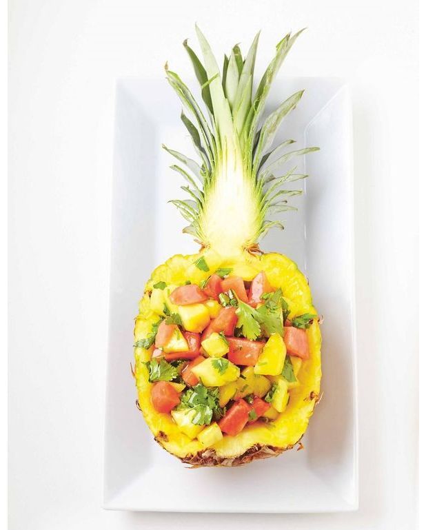 Découpez la pastèque en petits cubes et mélangez-les avec l'ananas. Ajoutez le miel, mélangez et laissez macérer 10 min au frais. Placez les fruits dans les coques d'ananas et ajoutez la coriandre coupée. Servez avec un sorbet au citron.