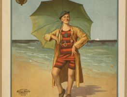 La Belle époque En 1900, il était considéré inconvenant de faire apparaître publiquement le torse mais aussi les cuisses et les avant-bras. N’imaginez pas à cette époque découvrir le poitrail musclé en marbre blanc de votre cher et tendre amant. La religion, encore omniprésente, a un rôle déterminant dans la forme de cet habit. Bannir le plaisir de la vue de la chair. Parfois en laine et à rayures, le costume de bain s’enfilait comme une combinaison de plongée et la partie du torse se boutonnait comme une chemise. De plus, les hommes dotés d’une nature bien généreuse devaient parfois s’affubler d’une « swimming robe« . En effet, en plus de leur pyjama de bain, les nageurs devaient se vêtir d’une robe pour dissimuler toute forme susceptible de heurter la sensibilité des personnes non en phase avec leur corps. Nager n’était pas chose évidente à cette époque.